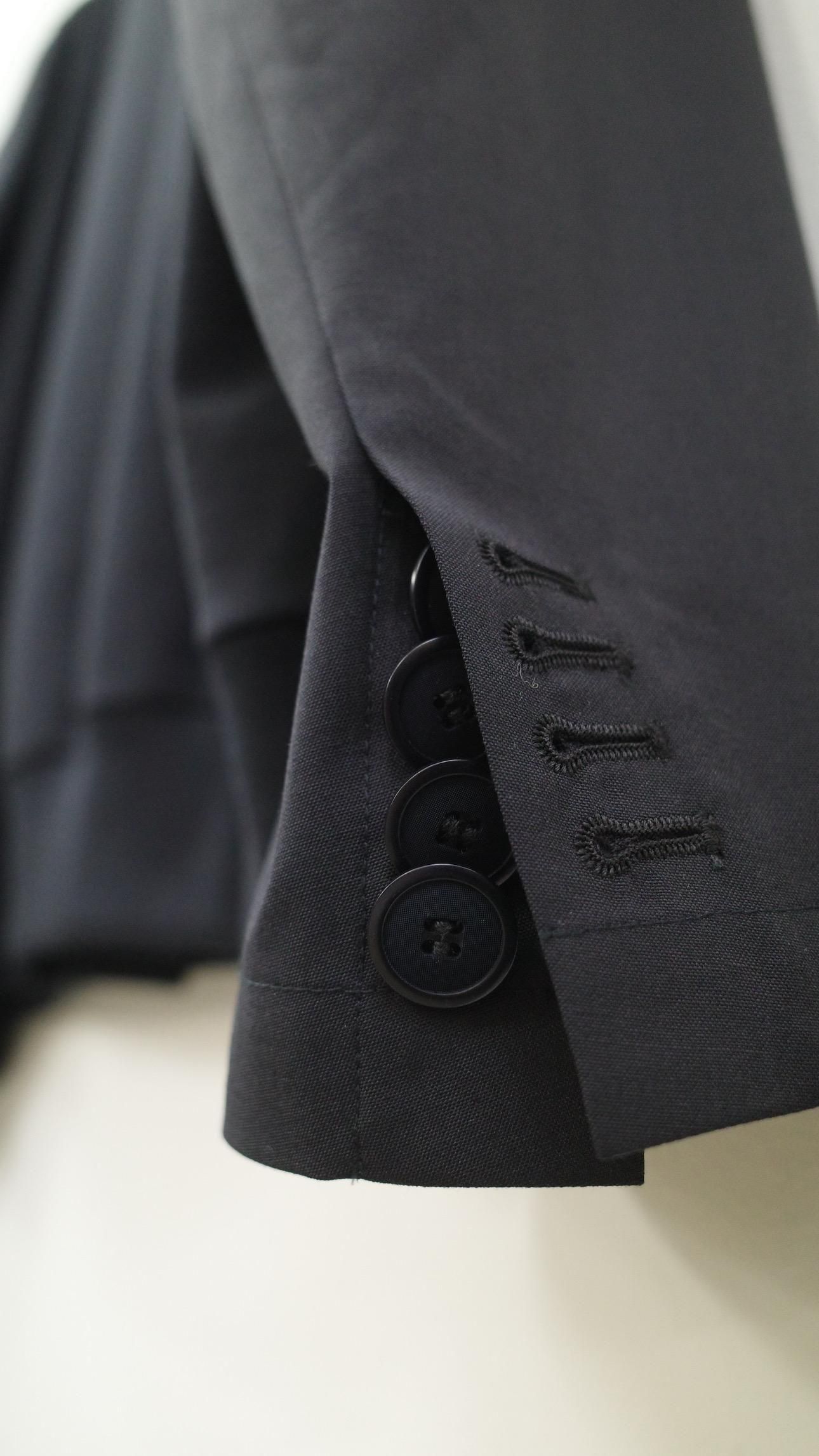 ドッキングされたスーツスリーブの袖⼝は、4つの重ねボタン、