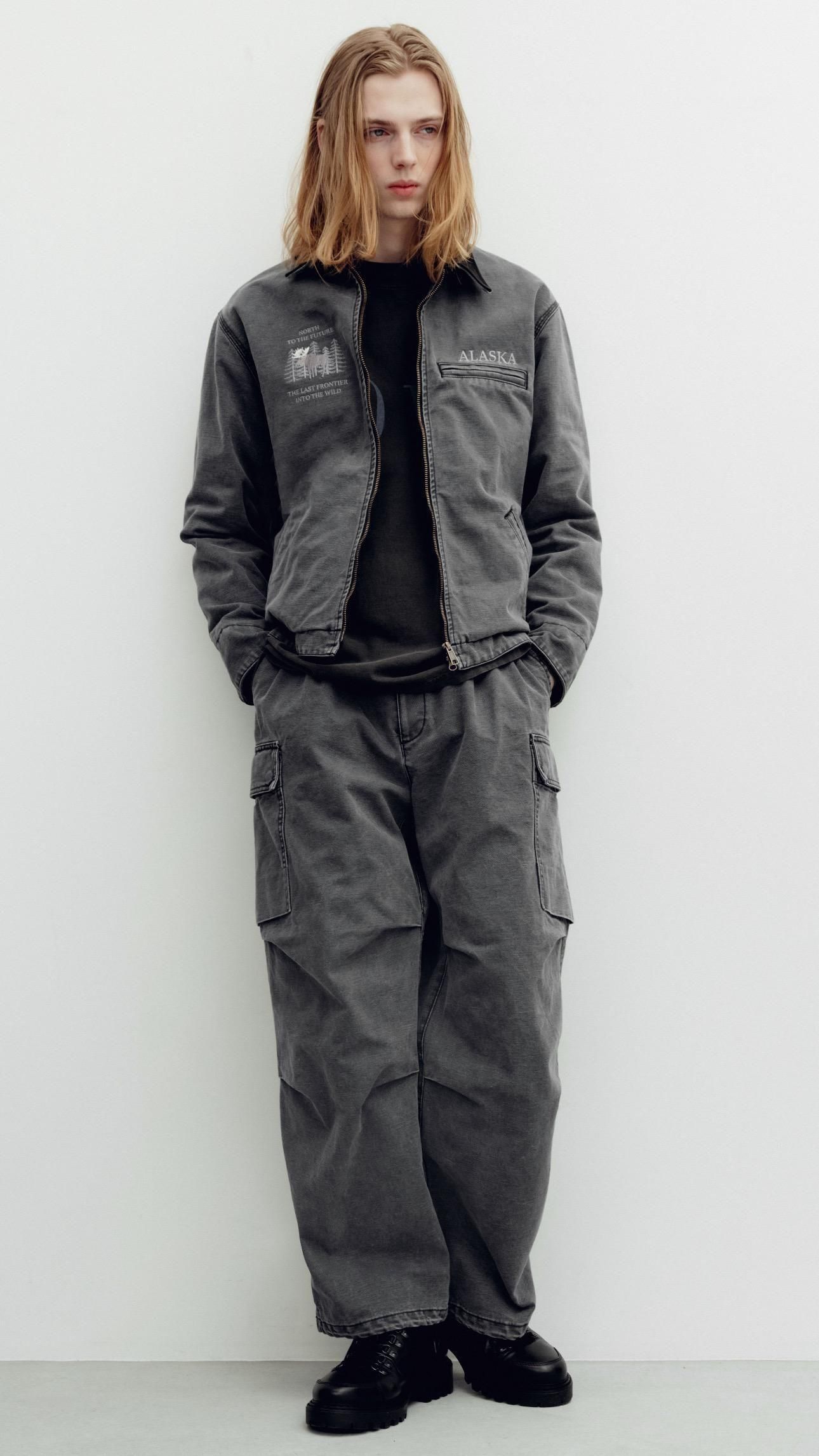 『FADE WIDE MILITARY TROUSERS』はフェードカラーのワイドミリタリーパンツです。ビンテージフェードのワーク&ミリタリーをテーマにデザイン。ダック生地は過酷な労働環境の中, 肉厚で頑丈な素材としてワーク, 防寒衣料に使用されていた。肉厚のため染料が 浸透しずらく, 糸中心は白く残るため、経年変化や加工により独特のフェード感が出る。ウエストはベルトループ、後部分に伸縮性ゴム、サイドにアジャスターボタンがあるためサイズ調整が可能です。裾はドローコード仕様のため絞ることが出来ます。サイドポ ケット、バック ポケットあり。「J-3」と同素材のためセットアップスタイルが出来ます。