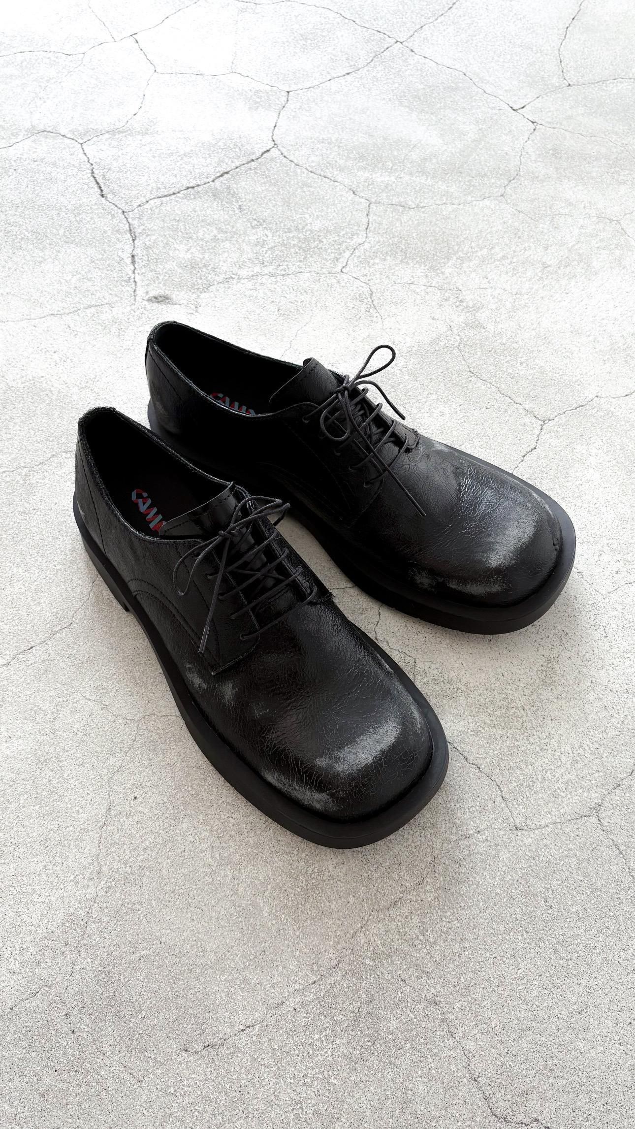 このダービーシューズは、「カンペールラボ」コレクションの中でもタイムレスに履ける人気の一足となっています。