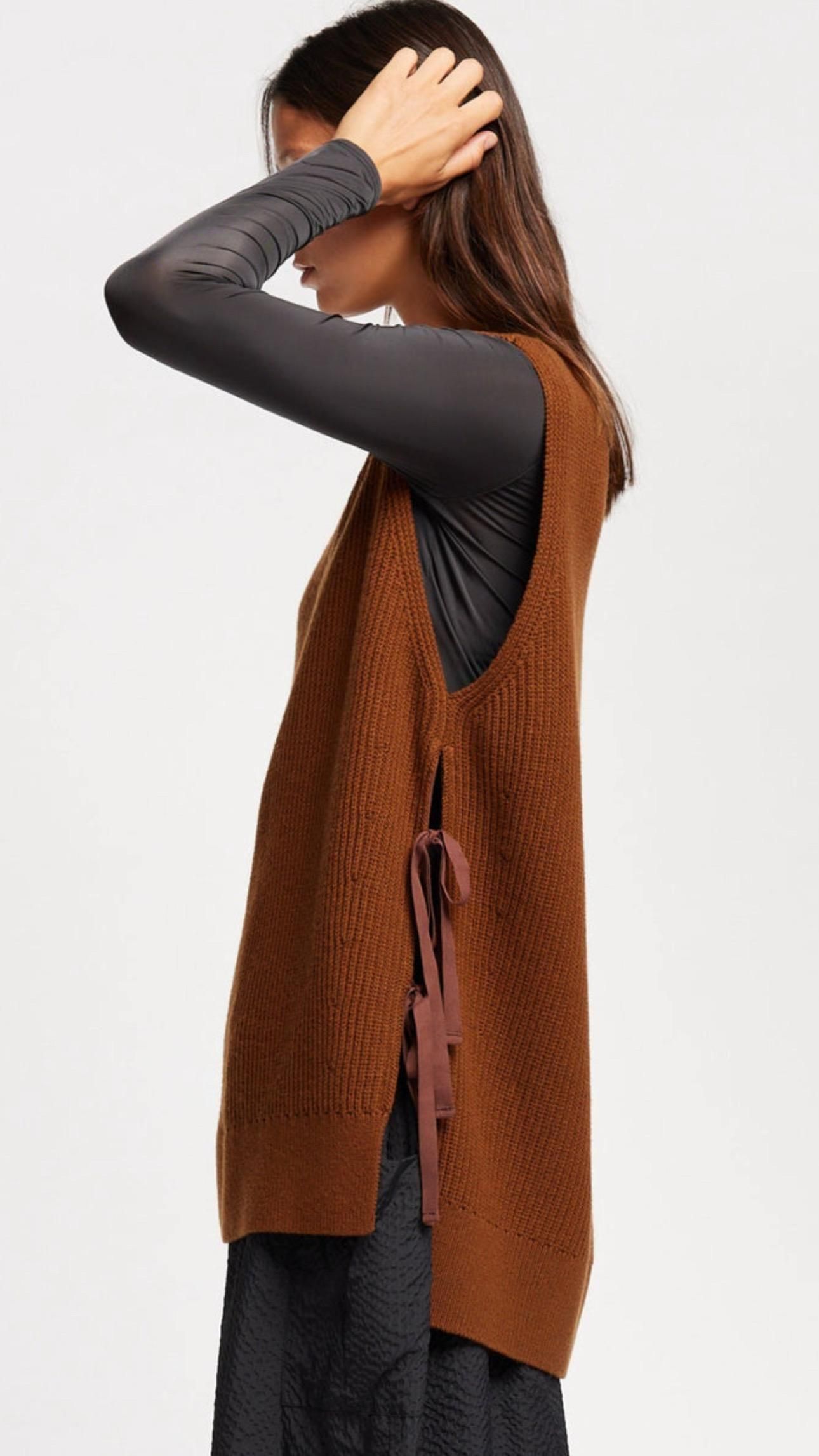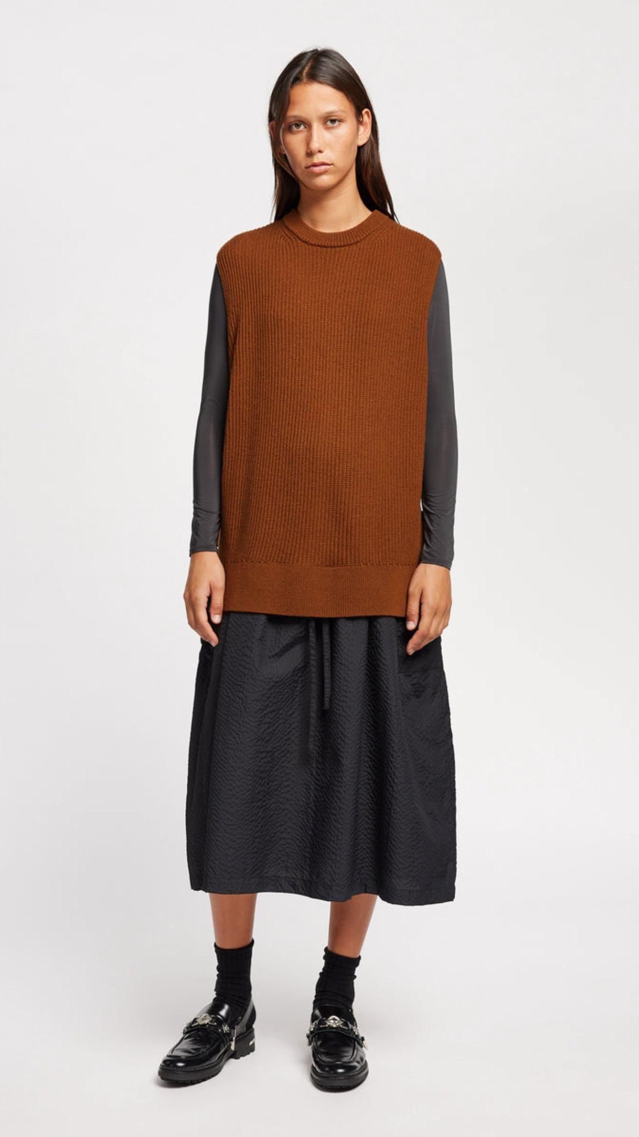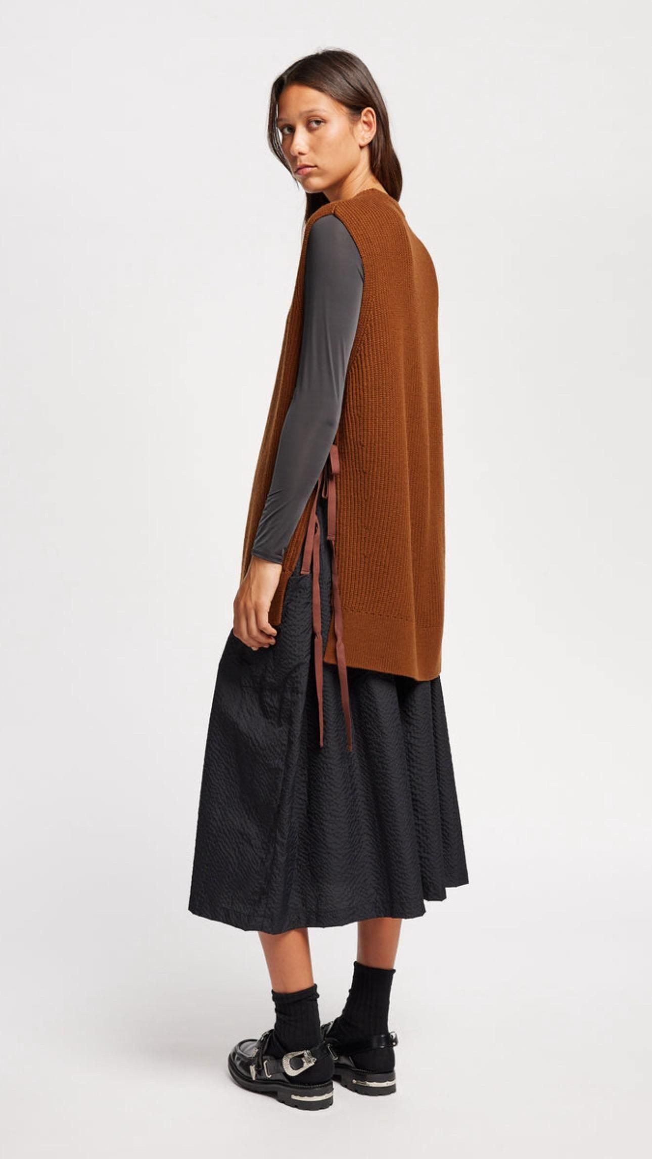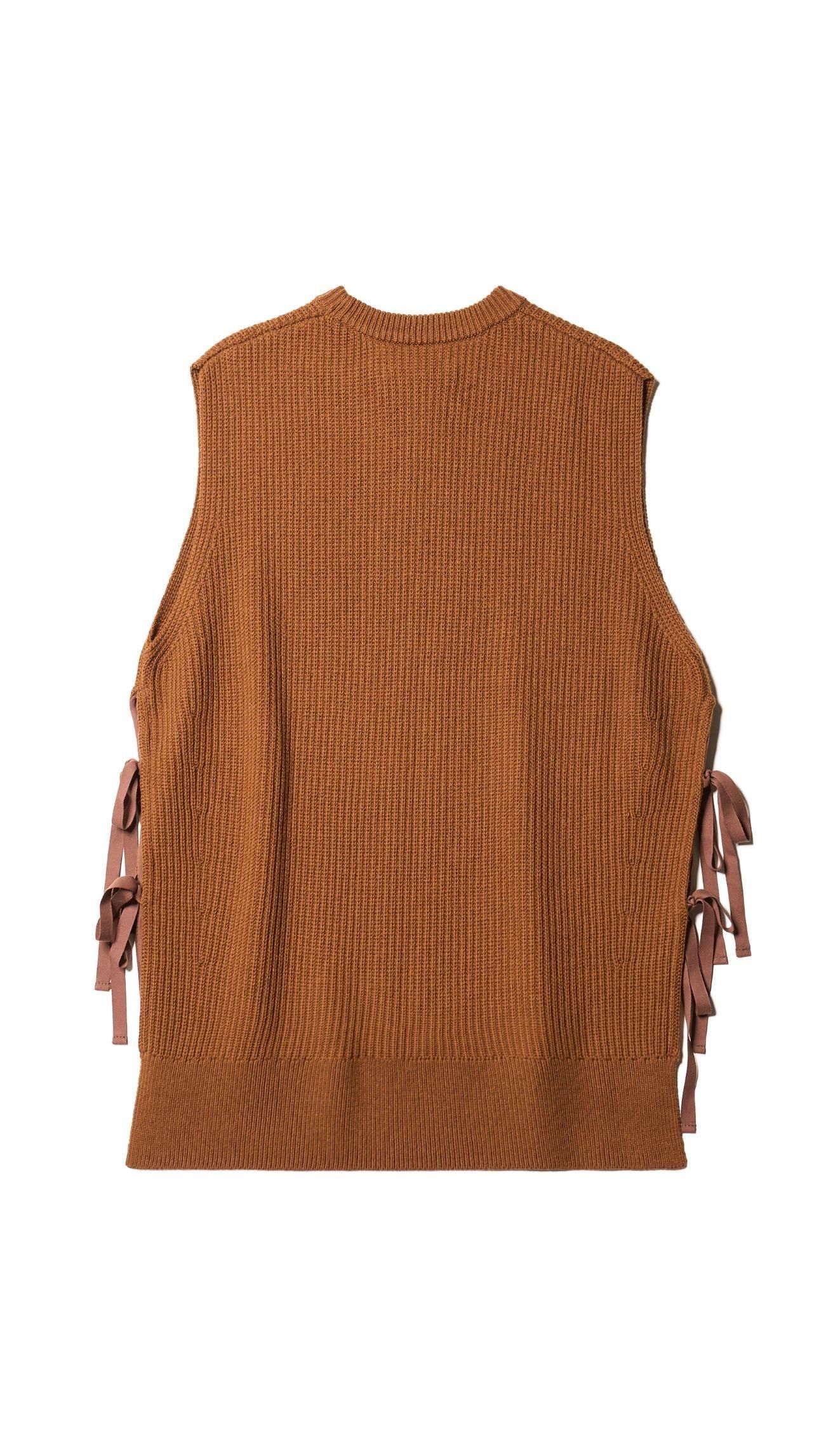 KLOKE SHARD RIBBED VEST 41,800円(税込) カラー Toffee サイズ S カートに入れる サイズ S 着丈:約69.5cm 身幅:約62cm 肩幅:約46cm 素材 メリノウール 55% コットン 45% 重ね着の新たな可能性を拓く、ノースリーブのニットベスト。 すっきりとしたラインと繊細な質感が特徴のリラックスフィットスタイル。 両サイドの紐でニットを留められます。 シャードベストは、季節の変わり目にぴったりのスタイルです。 ラウンドネック、アームホールと裾はリブ編みのトリムで仕上げました。